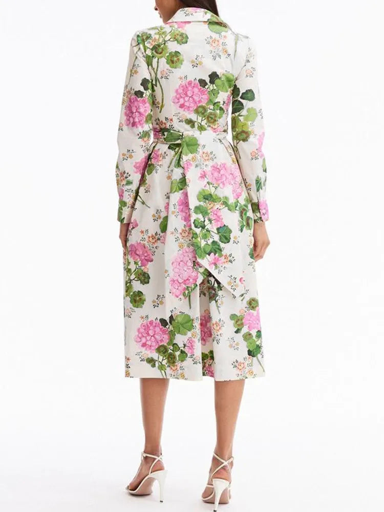 Elegant Colorblock Print Dress For Women Lapel Long Sleeve High Waist Spliced Lace Up Dresses Female Fashion Clothing Style