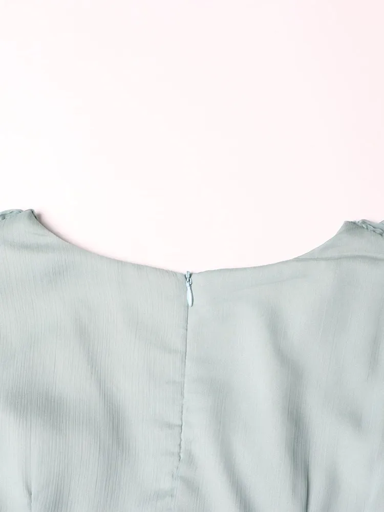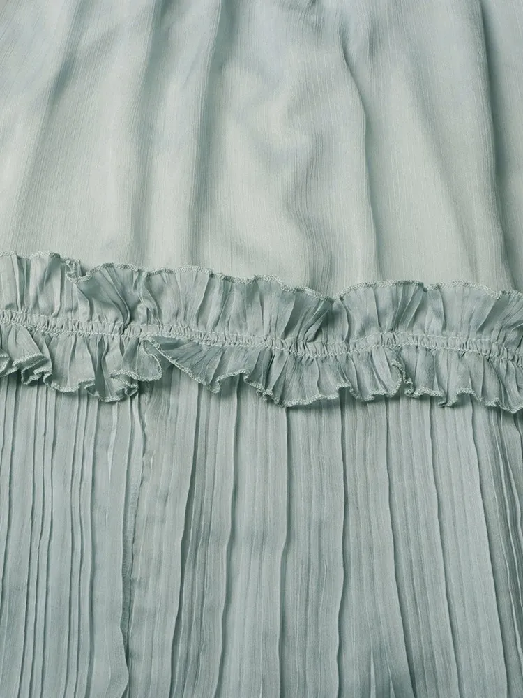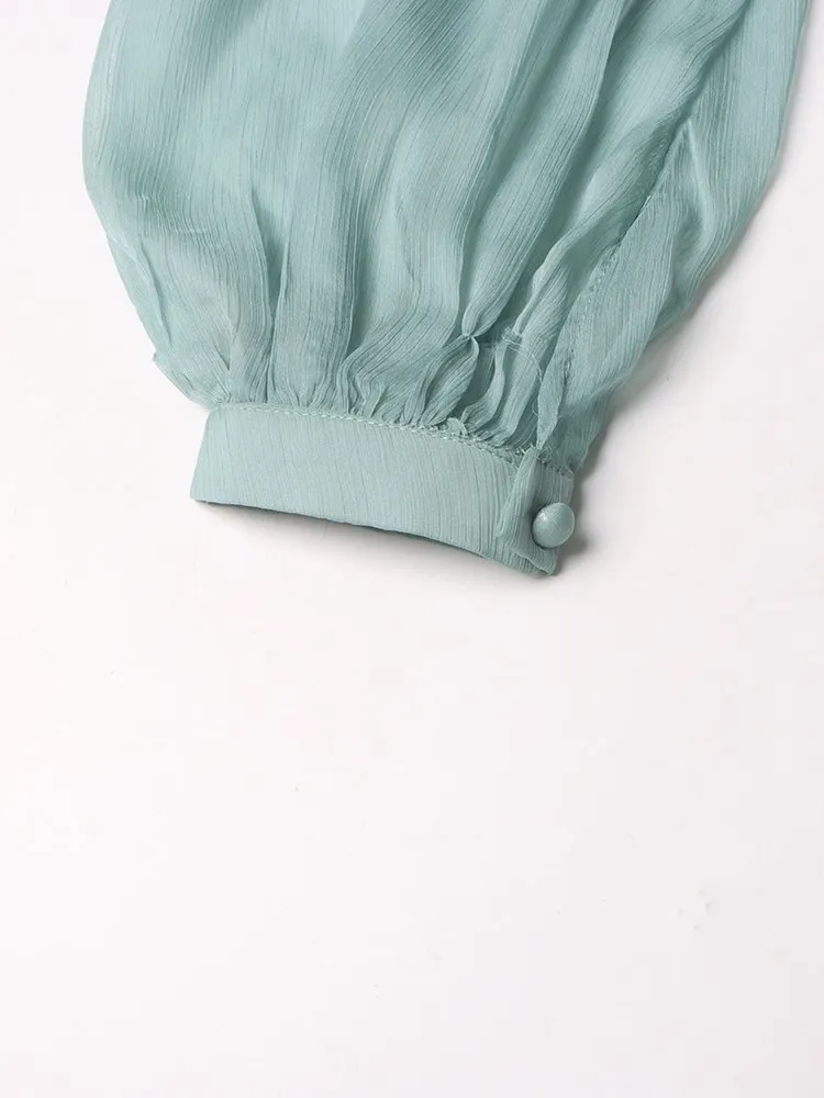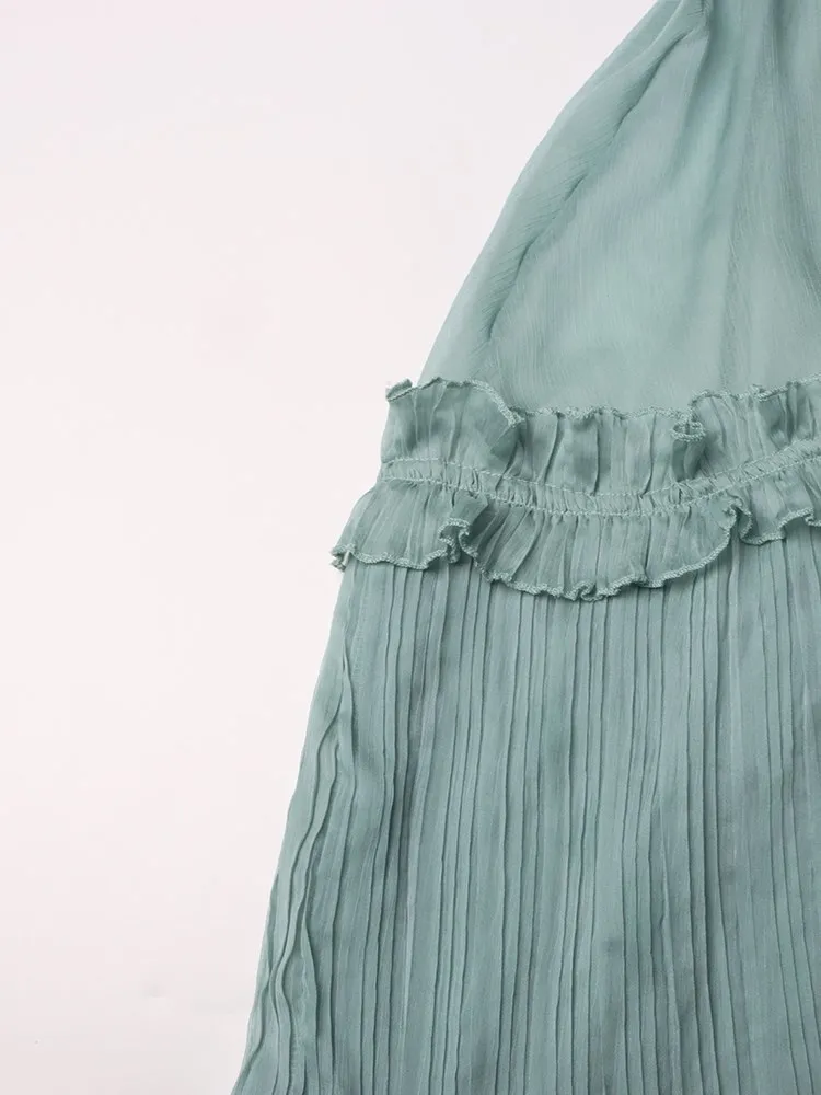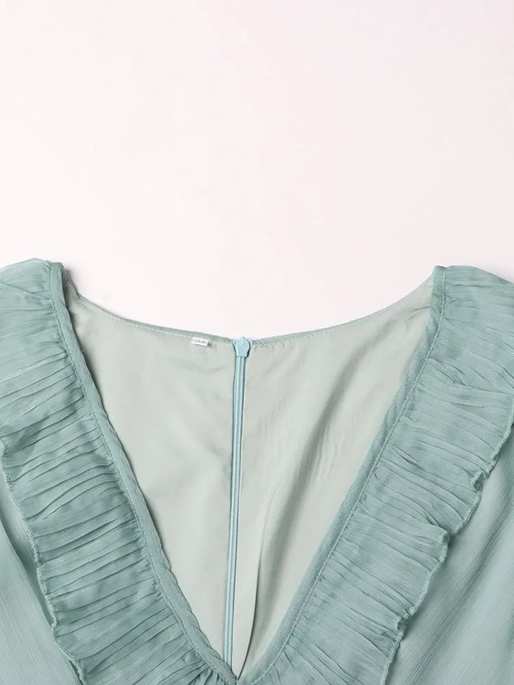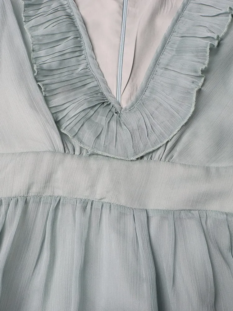 Solid Spliced Ruffles Elegant Dresses For Women V Neck Lantern Sleeve High Waist Patchwork Mesh Vintage Dress Female Style